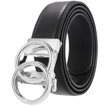 Cinturón con hebilla automática de doble anillo 2025, cinturón de cuero para hombre, cinturón sencillo y de moda de piel de vaca, cinturón con hebilla de aleación dorada y plateada