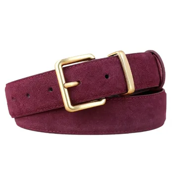高級女性の本革スエードベルト3.3cmワイドウエストバンドゴールド合金ピンバックルドレス用ファッションスタイルジーンズカジュアルウェア