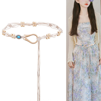 2025 Y2Kトレンディボヘミアンウエストチェーンバタフライタッセル合金サマービーチアクセサリービンテージ花ジャンスカートホワイトドレス