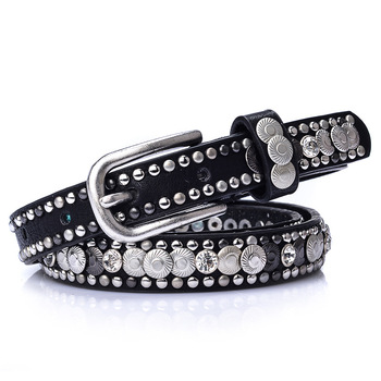 女性用パンツピンバックルビンテージリベットベルト女性用レディースオリジナル革ベルトウエストバンド女性用